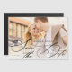 This pretty save the date features romantic script and a large photo. Elegant calligraphy reads "Save the Date" in black and overlays a full-bleed, landscape-orientation photo. The couple's names, wedding date, and wedding location are also written in black.