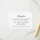 A refined reception card featuring flowing calligraphy script and classic serif typography in a timeless black-and-white design. Coordinates beautifully with a sophisticated wedding suite to share celebration details with guests. Customise the venue name, address, and reception details to match your event.