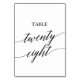 This elegant black calligraphy table twenty eight table number is perfect for a simple wedding. The neutral design features a minimalist card decorated with romantic and whimsical typography. The card prints on the front and back (double-sided). Other table numbers in the collection are sold separately.