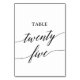 This elegant black calligraphy table twenty five table number is perfect for a simple wedding. The neutral design features a minimalist card decorated with romantic and whimsical typography. The card prints on the front and back (double-sided). Other table numbers in the collection are sold separately.