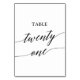 This elegant black calligraphy table twenty one table number is perfect for a simple wedding. The neutral design features a minimalist card decorated with romantic and whimsical typography. The card prints on the front and back (double-sided). Other table numbers in the collection are sold separately.