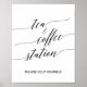 This elegant black calligraphy tea and coffee sign is perfect for a simple wedding. The neutral design features a minimalist poster decorated with romantic and whimsical typography.
