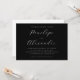 This elegant wedding invitation features a sophisticated black background with crisp white text, creating a striking contrast. The design employs a combination of cursive and serif fonts to highlight the names while maintaining a formal tone throughout. Its minimalistic layout emphasises legibility and balance, making it perfect for couples seeking a classic and timeless look. The absence of decorative motifs keeps the focus on the event details, conveying an atmosphere of anticipation and celebration. Ideal for those who appreciate understated elegance in their special day invitations.