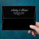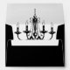 Elegant black chandelier Old Money formal wedding envelope. This envelope offers a sophisticated and memorable presentation for your wedding invitations. The envelope's exterior is of black colour. The back flap features space for the names in a script font and the return address. When opened, guests will be greeted by a beautifully designed interior showcasing an elegant chandelier, also rendered in black, providing a subtle yet luxurious hint of what awaits within. This envelope elevates the anticipation and sets a refined tone for your special day through its thoughtful colour palette and classic design.