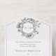 ALSO AVAILABLE WITH OR WITHOUT DINNER CHOICES. Elevate your special day with our elegant, vintage Baroque-style wedding invitation, a masterpiece of timeless elegance. Featuring a delicate French black chinoiserie crest with delicate line art ribbons, flowers, birds and filigree on a pristine white background, this design exudes classic charm and sophistication. Its simplicity highlights its refined details, creating a design as graceful as your love story. Perfect for those who cherish tradition and elegance. Created by Simply Farmhouse Press.