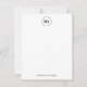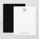 Black and white personalised circle monogram including initials and name. The back of the note card is solid black.