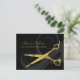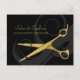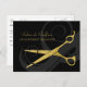 Elegant Black Curls Faux Gold Scissors Appointment Postcard