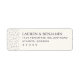 These return address labels feature a minimalist, modern design with a clean layout and ample negative space. The color palette is simple, utilizing black text on a white background for maximum readability and elegance. Decorative motifs include scattered black dots along the left edge, adding subtle sophistication without overwhelming the design. The typography is refined and serif-styled, enhancing the formal yet contemporary feel of the labels. Perfect for those who appreciate understated elegance in their stationery, these labels are ideal for personal correspondence or special occasions.