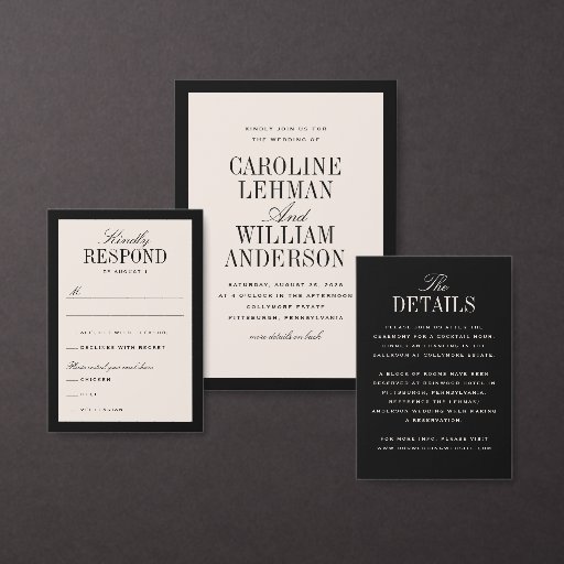 Elegant Black Double-Sided Wedding Invitation
