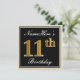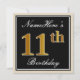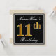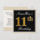 Elegant, Black, Faux Gold 11th Birthday + Name Invitation
