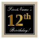Elegant, Black, Faux Gold 12th Birthday + Name Poster