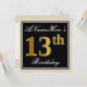 Elegant, Black, Faux Gold 13th Birthday + Name Invitation