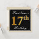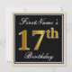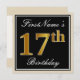 Elegant, Black, Faux Gold 17th Birthday + Name Invitation