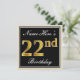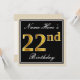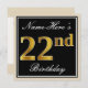 Elegant, Black, Faux Gold 22nd Birthday + Name Invitation