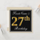 Elegant, Black, Faux Gold 27th Birthday + Name Invitation
