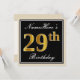 Elegant, Black, Faux Gold 29th Birthday + Name Invitation