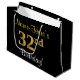 This simple, elegant birthday gift bag design features a personalised message like "Name-Here’s 32nd Birthday!" (with the "32nd" having a faux/imitation gold-like colouring look) on a black coloured background. The name is in script-like, yellow-coloured text, and can be personalised. A personalised birthday gift bag like this could perhaps be used when giving a present or gift to somebody who is celebrating their thirty second birthday. [~Z0000258]