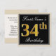 Elegant, Black, Faux Gold 34th Birthday + Name Invitation