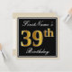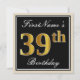 Elegant, Black, Faux Gold 39th Birthday + Name Invitation