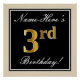 Elegant, Black, Faux Gold 3rd Birthday + Name Poster