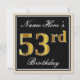 Elegant, Black, Faux Gold 53rd Birthday + Name Invitation