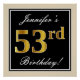 Elegant, Black, Faux Gold 53rd Birthday + Name Poster