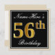 Elegant, Black, Faux Gold 56th Birthday + Name Invitation