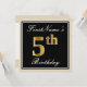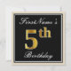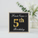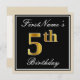 Elegant, Black, Faux Gold 5th Birthday + Name Invitation