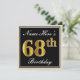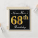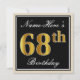 Elegant, Black, Faux Gold 68th Birthday + Name Invitation