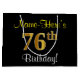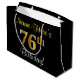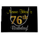 Elegant, Black, Faux Gold 76th Birthday + Name Large Gift Bag