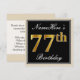Elegant, Black, Faux Gold 77th Birthday + Name Invitation