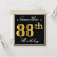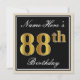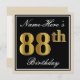 Elegant, Black, Faux Gold 88th Birthday + Name Invitation