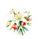 This acrylic sign features an elegant and sophisticated design, perfect for any bar or home entertainment area. The layout is vertically structured with a clean white background that highlights the stylish script font used for "the DRINKS" at the top, followed by neatly organized sections for BEER, WINE, and SPIRITS in bold serif fonts. A delicate watercolor floral illustration of lilies and tulips adds a touch of natural beauty to the bottom left corner, enhancing the refined aesthetic. The color palette includes soft greens, pinks, and yellows against the crisp white backdrop, creating a welcoming and upscale atmosphere ideal for cocktail parties or casual gatherings.