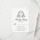 Complete your wedding suite with our Elegant Black Floral Crest Monogram wedding RSVP card, designed to coordinate perfectly with your invitation. Featuring a sophisticated black crest adorned with botanical elements and centred around the couple's monogram initials, this RSVP card offers a refined and cohesive look. Elegant black calligraphy script adds a timeless touch, while customisable text allows you to personalise the response date and your preferred accepts/declines wording. A stylish and practical addition to your wedding stationery, this card helps gather responses with grace and ease.