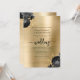 Elegant Black Floral Gold Brushed Metal Wedding Invitation
