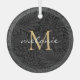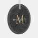 Elegant Black Floral Gold Script Monogram Glass Tree Decoration