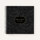 Elegant vintage black floral botanical pattern sketchbook with a custom name in gold stylish script typography and "sketchbook" in gold modern san serif font.