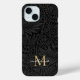 Elegant Black Floral Gold Script Monogram iPhone 15 Case-Mate case.