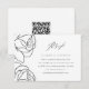 This modern black and white floral wedding response card includes a place for your QR code so that guests can easily rsvp on your wedding website.