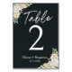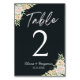 Add a touch of sophistication to your wedding decor with this elegant black floral table number card. Featuring delicate ivory and blush florals with lush green leaves, this design beautifully complements modern, romantic, or classic wedding themes. Customize with your names, wedding date, and table number for a polished, personal touch. Perfect for receptions, dinner parties, or any elegant celebration.