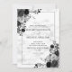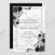 Elegant Black Flowers Watercolor Marble Wedding Invitation