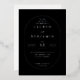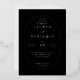 This elegant wedding invitation features a sophisticated black background with crisp white text, creating a striking contrast. The design showcases a balanced layout within an oval frame, emphasizing the names and event details in bold serif fonts that exude formality and grace. Its minimalistic approach highlights clean lines and ample negative space, enhancing readability while conveying a mood of anticipation and celebration. Perfect for couples seeking a classic yet modern aesthetic, this invitation is ideal for formal weddings, offering customizable fields to personalize the occasion seamlessly.