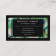 Elegant black framed peacock feathers blue green business card