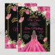 Elegant Black Fuchsia Pink Floral Mis Quince Invitation