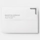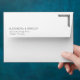 This wedding envelope features a minimalist design with a clean, horizontal layout that balances elegance and simplicity. The color palette is primarily black on white, creating a striking contrast that emphasizes clarity. A decorative geometric element adds sophistication to the right side, complementing the modern sans-serif typography used for the names and address. The overall style exudes contemporary formality, making it perfect for a chic and understated wedding invitation suite.