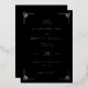 This elegant wedding invitation features a sophisticated black and white color palette, creating a striking contrast that enhances readability. The design showcases a modern yet classic style with geometric corner motifs adding a touch of refinement. Clean serif typography is used for the main text, while script font highlights key phrases, offering a personalized feel. The layout is centered with ample negative space, emphasizing clarity and formality, perfect for celebrating a significant life event.
