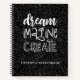 This personalised girly 8.5 x 11 sketchbook has black text on a beautiful black faux glitter background. The words, "DREAM,IMAGINE,CREATE" in a hand drawn font personalised with your name below. Customise the sketchbook with the name of your choice to make someone feel extra special. Makes a fun gift for birthdays or for Christmas. Comes in a variety of colours. Designed for you by Blackberry Boulevard.