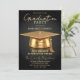 Elegant Black & Gold 3D Cap Graduation Party Invitation