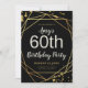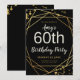 Celebrate this remarkable milestone in style with this elegant black and gold 60th birthday party invitation. The luxurious geometric gold accents and modern typography create a sophisticated, upscale look perfect for any formal or semi-formal celebration. Personalize the name, age, date, location, and RSVP details to make it uniquely yours. Ideal for glamorous birthday parties, evening events, and milestone celebrations.