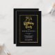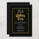 Modern, elegant and classy black and faux gold glitter 75th birthday party design. Composite by Holiday Hearts Designs (rights reserved).